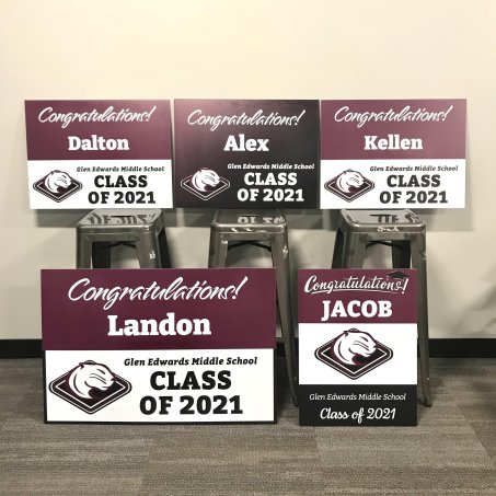 For customized bulk orders, send us a document with the names of your students. We’ll handle all customization and printing. Signs will be delivered to you at a predetermined time and location.